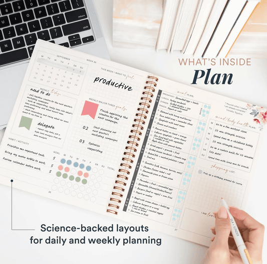 Writing things down helps boost memory and cognitive function. Daily and weekly planning allows you to keep track of your to-dos and build healthy habits.