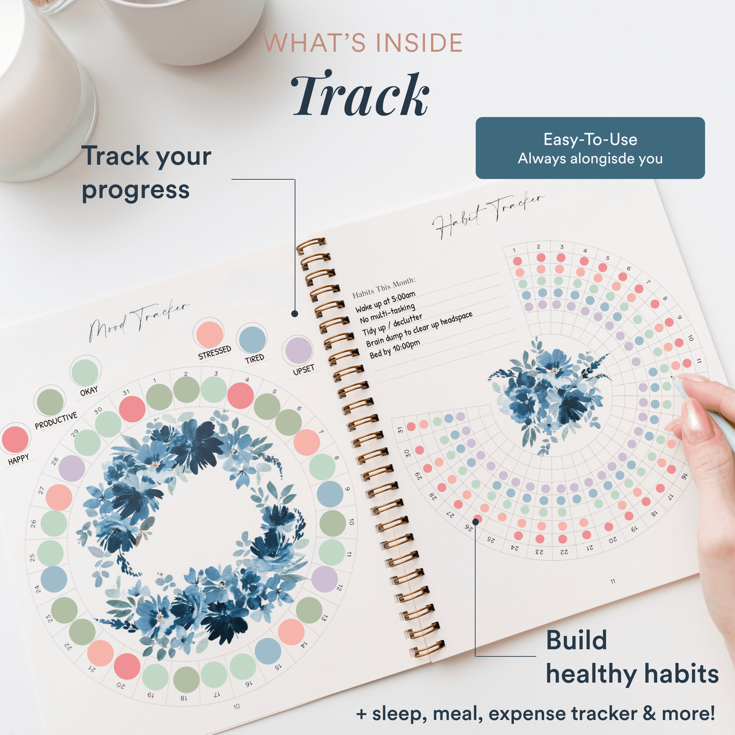 Our easy-to-use life coach-recommended planners feature customizable layouts, guided prompts, and mood, habit, and sleep trackers to keep you organized and focused.