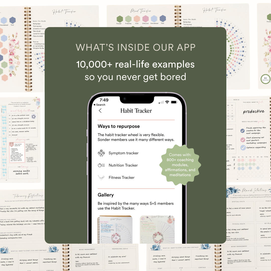Our app includes a 21-day challenge to build your journaling habit led by our Founder & CEO, 800+ coaching modules for clarity, personalized daily affirmations and prompts, monthly self-care challenges, mini-meditations, and best of all, Sonder Club - our private members-only community.