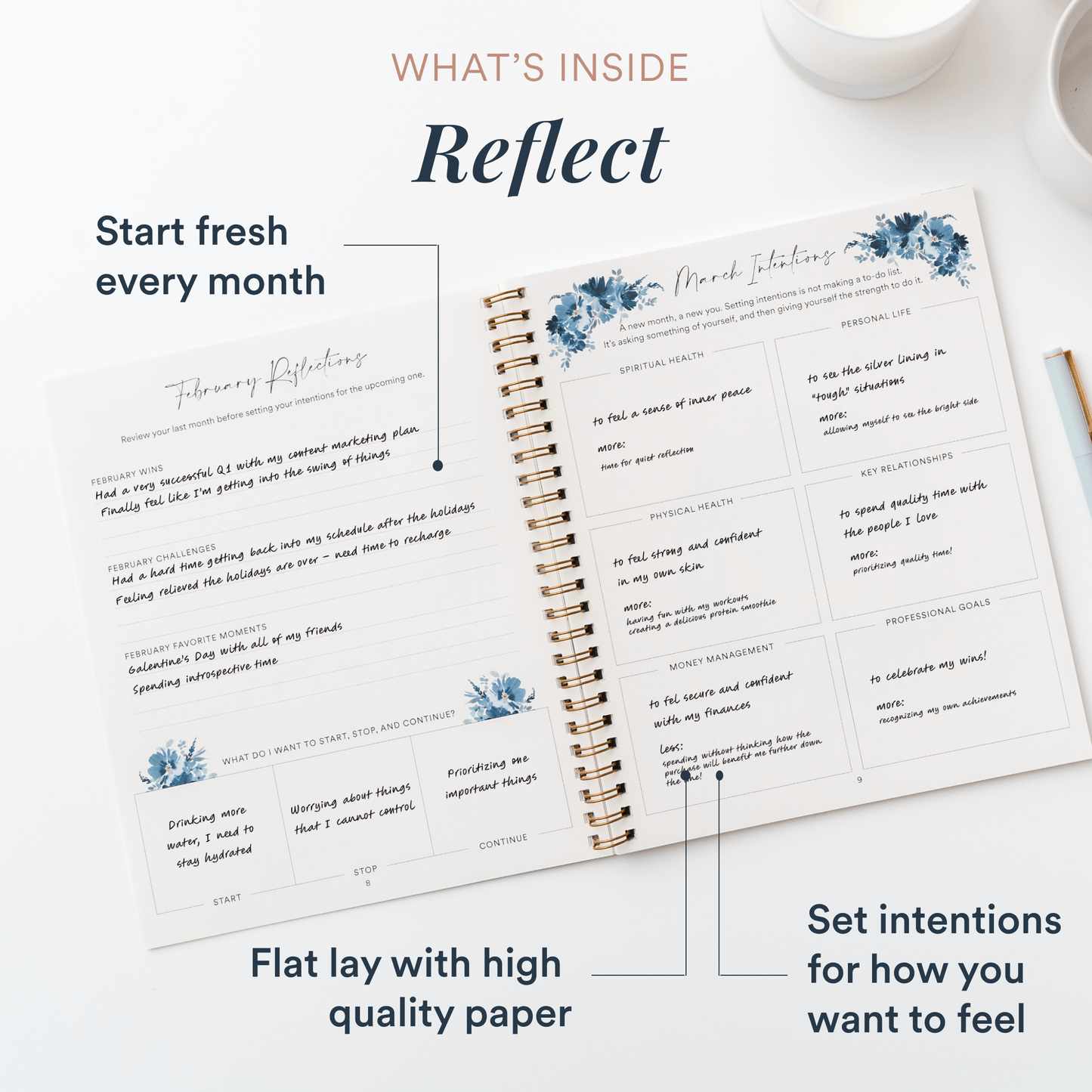 We offer a fresh start and personalization with new content every month. Our monthly journals are themed with new evidence-based exercises and proven layouts and trackers for long-lasting habit formation.