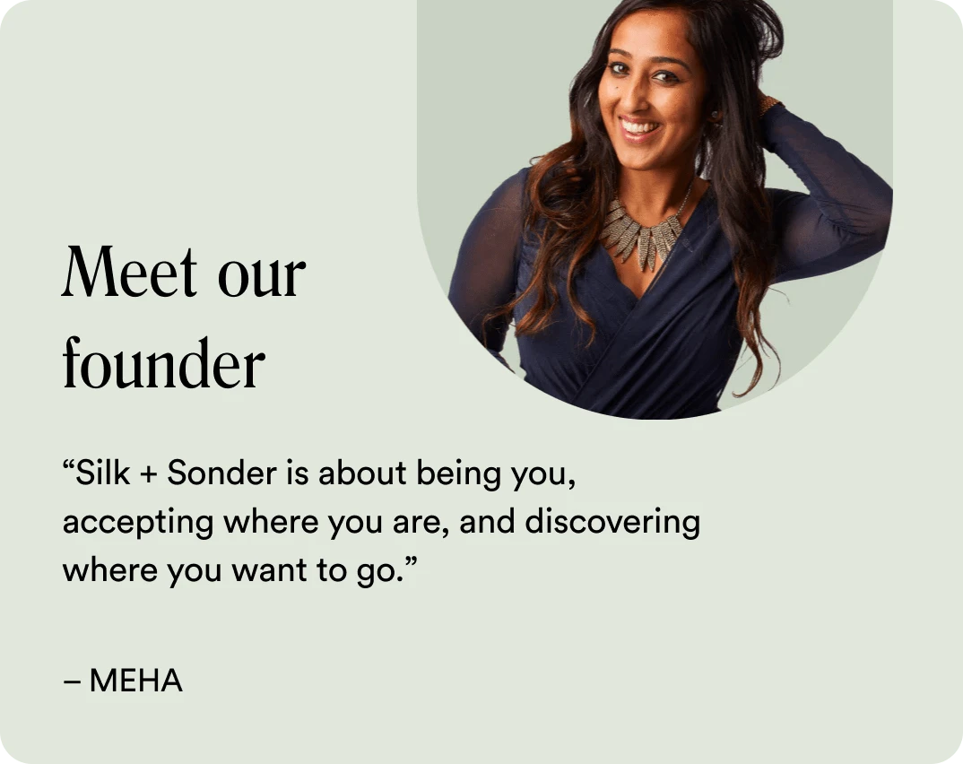 We’re so confident that you’ll love Silk + Sonder that we offer a 30 Day No Questions Asked Guarantee. That way you can try our program 100% risk free!