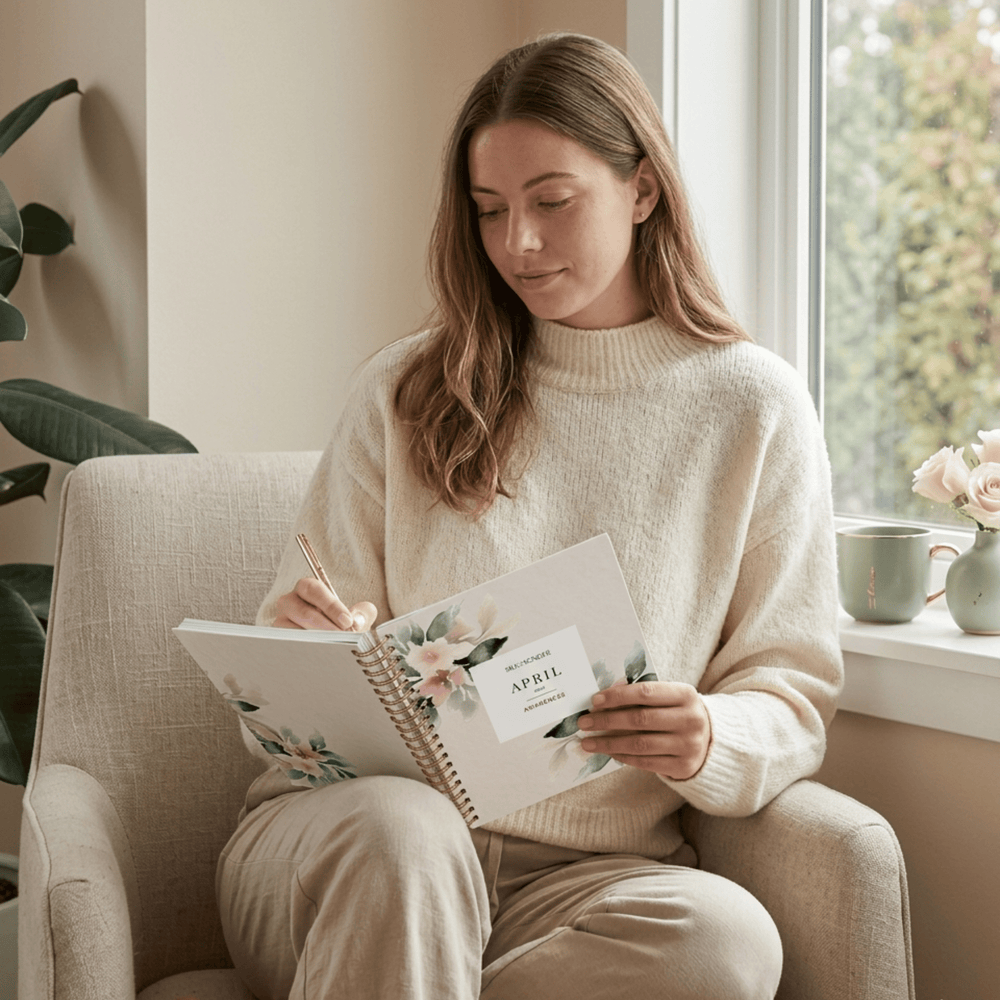 Getting started with guided journaling is easier than you think. Choose the membership plan that feels right for you, and you'll be ready to dive in. While you wait for your first monthly journal to arrive (if you've picked the print option), you can start exploring the app with guided prompts and audio reflections. Start small, even just five minutes a day is enough to check in with yourself, set intentions, and track little habits. With the journal's gentle structure, there's no guesswork, just simple guidance to help you build clarity, consistency, and a little more peace of mind from day one.
