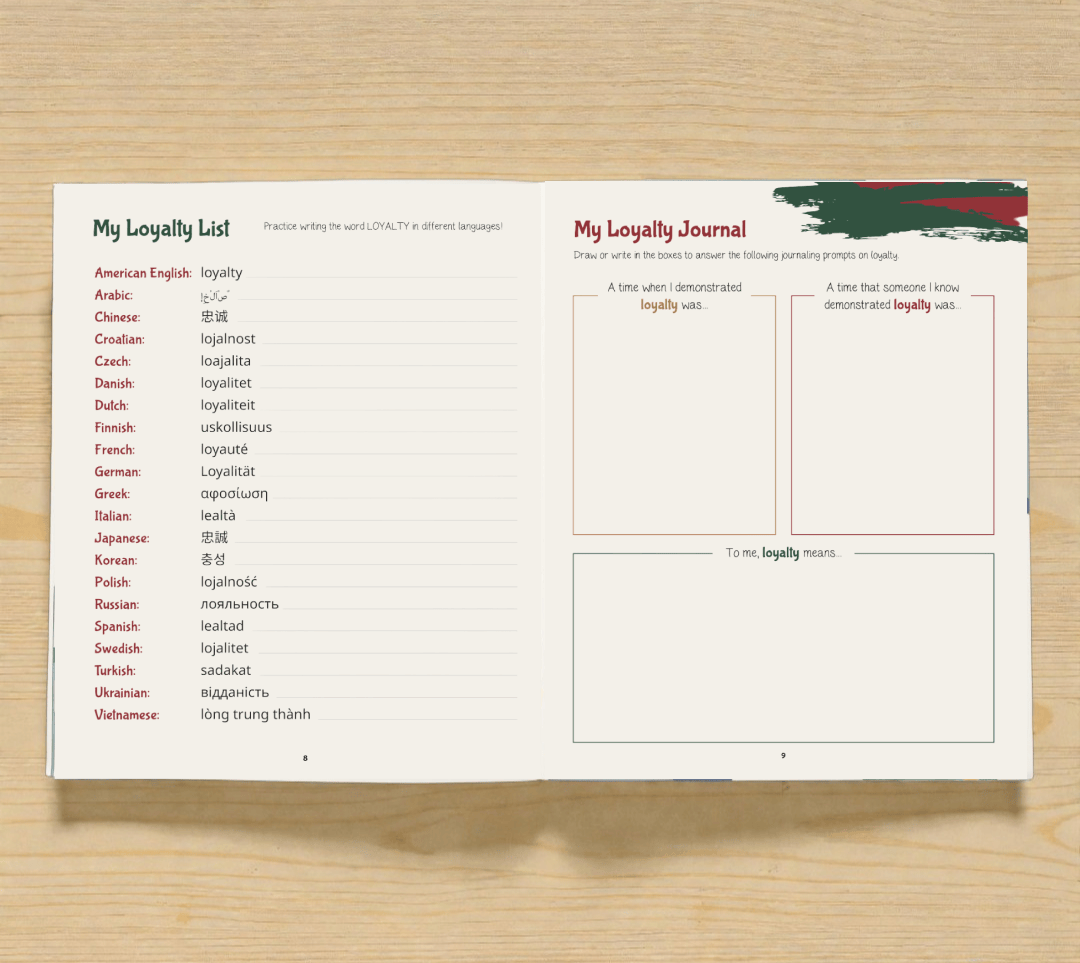 A playful, confidence-building, dateless journal for children ages 6–12, created in partnership with educators and moms and designed to help kids express their feelings, explore their imagination, and build healthy habits. Through simple daily prompts, games, and creative activities, Sonder Kids Journal - Loyalty turns self-care into something fun, accessible, and screen-free. Whether they’re drawing, reflecting, solving puzzles, or tracking habits, kids build emotional awareness, writing skills, creativity, life skills, and self-esteem — all while having fun, a few minutes at a time.