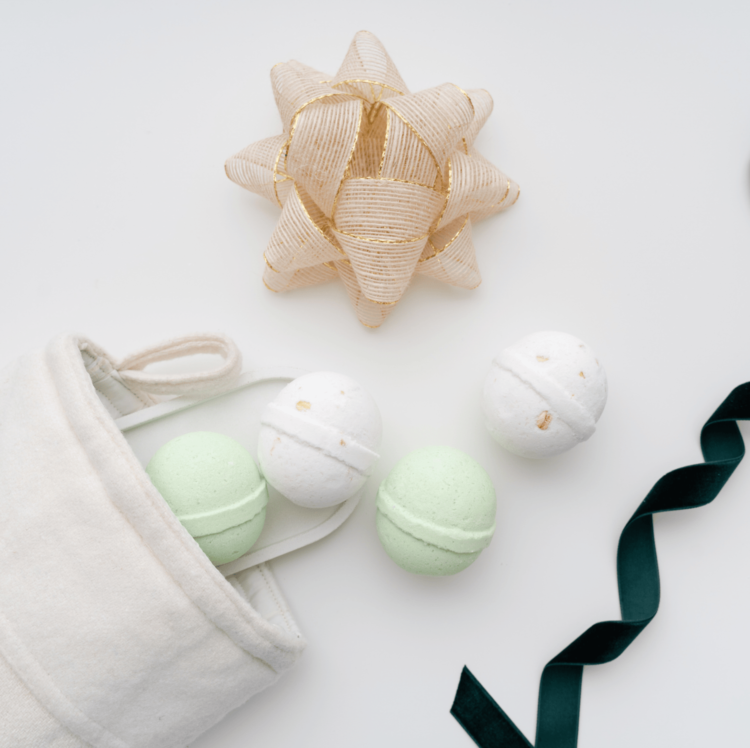 - 2 Bath Bombs (in nourishing oatmeal/honey and moisturizing eucalyptus for a soothing unwinding experience)