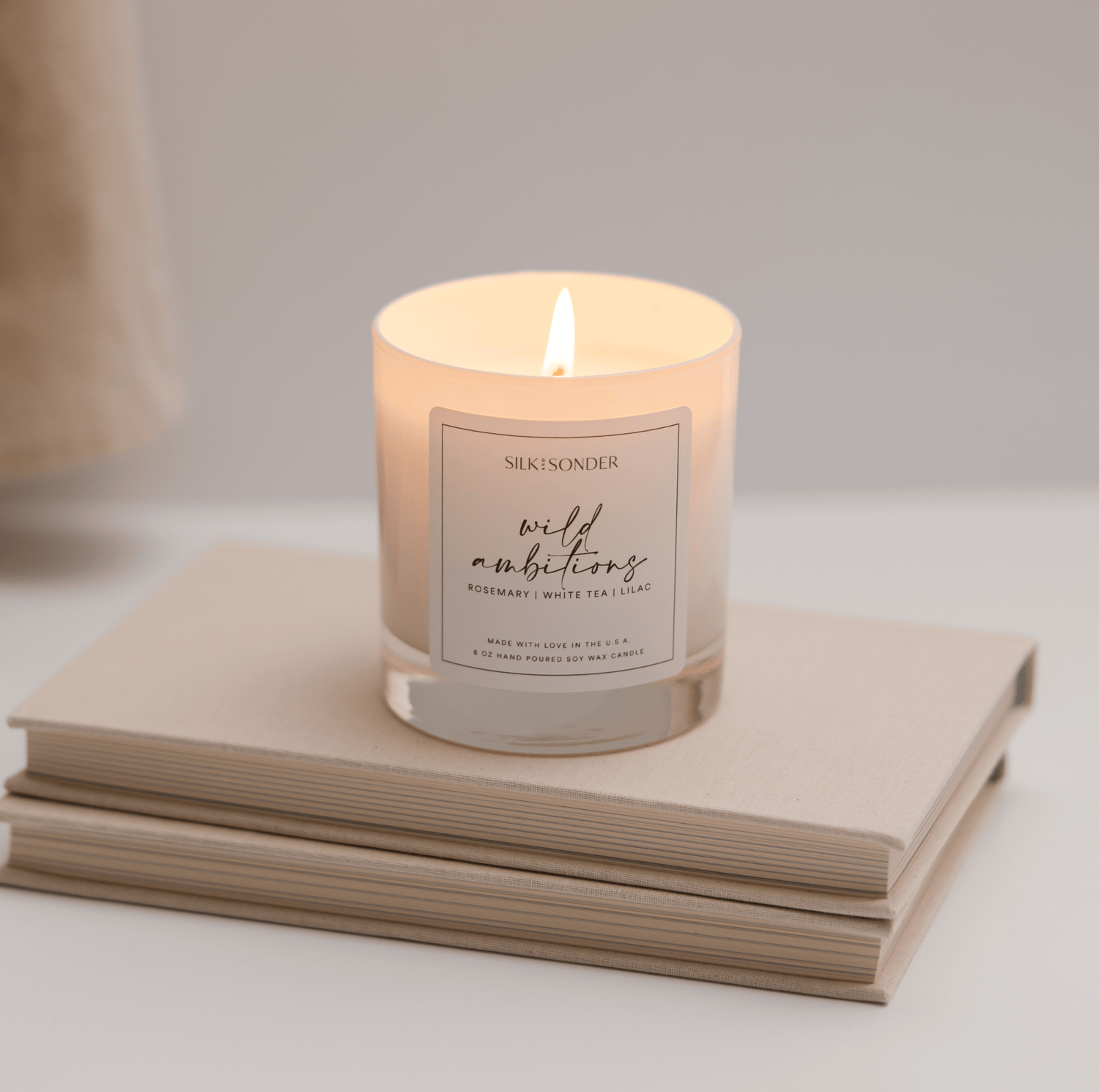 - 1 Wild Ambitions Candle (an uplifting blend of rosemary, white tea, and lilac designed to help improve mood and relieve stress)
