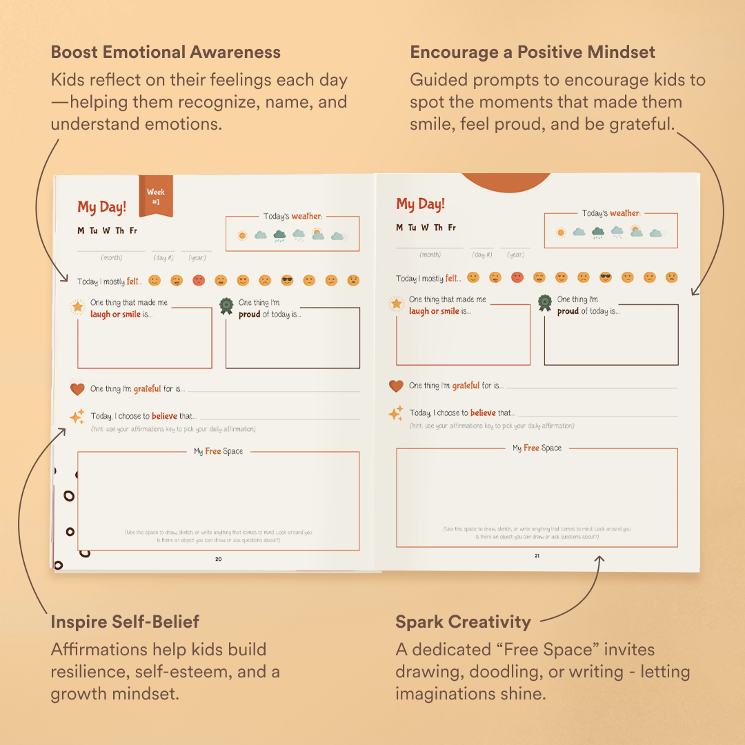 Prompts help kids notice feelings, practice gratitude, and build habits.