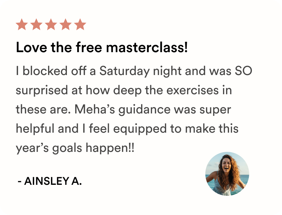 FREE BONUS: Masterclass with Founder & CEO and Life & Mindset expert, Meha Agrawal included.