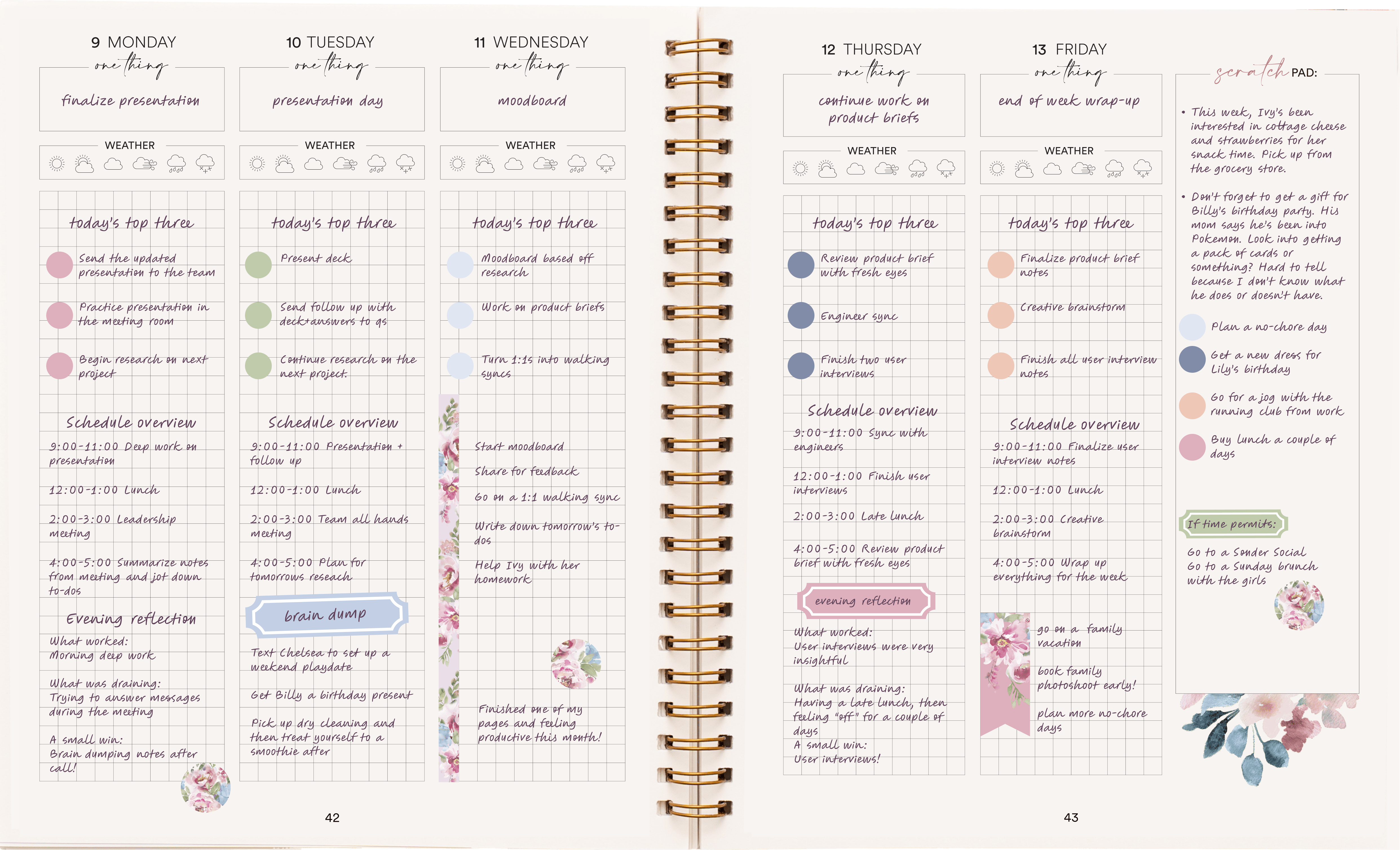 Elevate your creativity and add a touch of playful elegance to your spreads. Our Washi Tape Sticker Set includes 10 pages of decorative washi-style strips in an array of colors, perfectly designed to pair with your Silk + Sonder journal.
